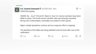 이란 공격 중 사망한 미군 4명으로 늘어지난달 28일 시작된 미군의 이란 공격과 이란의 반격 과정에서 숨진 미군이 4명으로 늘었습니다.미 중부사령부는 2일 엑스에 올린 글에서 "미 동부시간 2일 오전 7시 30분 현재까지 미군 병사 4명이 전사했다"며 4번째 전사자는