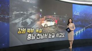 [이슈5] 강원 북부 20㎝ 폭설…충남선 차량 10대 추돌 外지금 이 시각, 여러분이 주목할 만한 이슈 살펴보겠습니다.<1> 지난밤 강원 북부 지역에 최대 20㎝의 폭설이 쏟아져 출근길 불편이 이어졌습니다.충남에서는 고속도로에서 차량이 눈길에 미끄러지면서 다중 추돌 사고가 발생했
