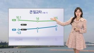 [날씨] 한낮 포근, 때 이른 봄 날씨…내일 출근길 안개 주의영하권 아침과 다르게, 낮에는 봄이 온 듯 날이 무척 따뜻했습니다.오늘 서울은 낮 기온이 16.1도까지 오르며, 예년 기온을 10도 가까이 웃돌았는데요.내일도 아침에는 쌀쌀하고, 낮에는 포근한 날씨가 이어지겠습니다.일교차가 큰 곳