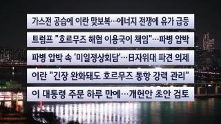 [이시각헤드라인] 3월 19일 뉴스리뷰■가스전 공습에 이란 맞보복…에너지 전쟁에 유가 급등■이스라엘이 이란 최대 가스전을 공습하자 이란도 카타르의 세계 최대 LNG 시설에 보복 공격을 감행했습니다.양측의 에너지 시설 공방이 본격화하면서 국제유가 급등 등 글로벌경제에