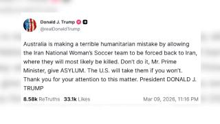 트럼프 "국가 안 부른 이란女축구팀, 호주 망명문제 해결중"도널드 트럼프 미국 대통령이 호주에서 열린 국가대항전에서 국가를 따라 부르지 않았던 이란 여자축구대표팀의 망명을 받아줄 것을 호주 정부에 촉구했습니다.트럼프 대통령은 현지시간 9일, 트루스소셜에 올린 글에서 "살해될 가능성이 높은