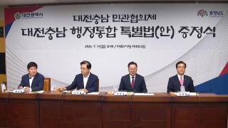대전·충남 '행정통합' 탄력…"내년 7월 출범 목표"[앵커]이재명 대통령이 최근 대전과 충남의 행정통합에 관심을 표명하면서 관련 논의에 속도가 붙는 모습입니다.정부는 내년 7월 행정통합을 목표로 하고 있는데, 풀어가야 할 과제도 적지 않아 보입니다.김규희 기자입니다.[기자]이재명
