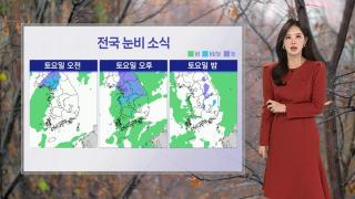 [날씨] 주말 중부 강한 눈…강원 최고 15㎝ 폭설주말인 내일 궂은 날씨에 대비하셔야겠습니다.서쪽 지역에 비가 내리기 시작해 오후에는 전국으로 확대되겠는데요.오전에는 비가 내리다가 기온이 떨어지는 늦은 오후부터 비가 눈으로 바뀌어 내리겠습니다.특히 중부를 중심으로 폭설이 예상되는