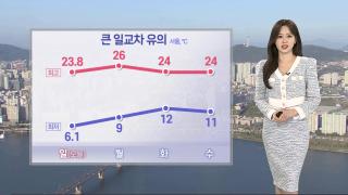 [날씨] 내일 '서울 26도' 봄 더위 기승…제주·남해안 비주말 동안 전국적으로 맑고 따뜻한 날씨가 이어졌습니다.이번 한 주간은 낮 동안 고온 현상이 이어질 텐데요.내일 서울의 낮 기온 26도로 때 이른 더위가 기승을 부리겠습니다.하지만, 해가 지면 기온이 빠르게 떨어져 쌀쌀하니까요.옷차