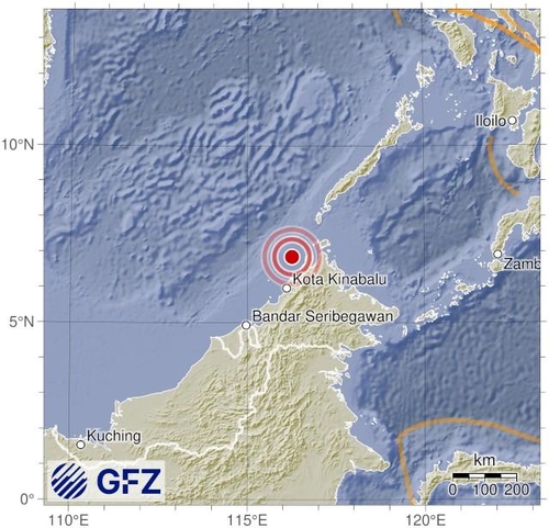 코타키나발루 북부 연안서 규모 7.1 강진…"지진해일 없어"오늘(23일) 오전 1시 57분쯤 보르네오섬의 말레이시아 휴양지 코타키나발루로부터 북쪽으로 55㎞ 떨어진 연안에서 미국 지질조사국(USGS) 측정 규모 7.1의 지진이 발생했습니다.진앙은 북위 6.83도, 동경 116.26도이며
