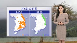 [날씨] 건조한 날씨 속 강한 바람…아침 영하권 추위산불 등 화재 사고 나지 않도록 각별히 주의하시길 바랍니다.대기가 건조한데 바람까지 강하게 불고 있습니다.현재 동쪽 지역을 중심으로 건조특보가 발효 중입니다.특보가 확대되면서 서울에도 건조주의보가 내려졌고요.동해안을 중심으론 강풍