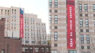 외교부, '러 대사관 현수막'에 "북러 협력 중단해야"주한러시아대사관이 '승리는 우리의 것'이라고 적힌 현수막을 내건 뒤, 철거하지 않는 것으로 파악됐습니다.최근 러시아 대사관은 건물 외벽에 이같은 대형 현수막을 게시했는데, '러·우 전쟁'을 연상시킨다는 지적이 나왔습니다.이와 관련