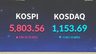 코스피, 하루새 또 최고치…5,800선 첫 돌파코스피가 사상 처음으로 5,800선을 돌파했습니다.20일 오후 코스피가 전 거래일 대비 123.02 포인트(2.17%) 상승하며 5,800.27를 기록했습니다.장 초반 5,700선을 넘어선 데 이어 오후 들어 5,800선까지 올라