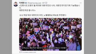 李 "인류사 모범 될 국민…대한민국은 한다"이재명 대통령은 12·3 비상계엄을 막은 대한민국 국민이 노벨평화상 후보로 추천됐다는 기사를 공유하며 "인류사의 모범이 될 위대한 대한국민의 나라, 대한민국이었기에 가능했다"고 말했습니다.이 대통령은 어젯밤(18일) 자신의 SNS