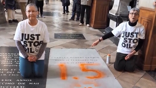 과격 환경단체, 찰스 다윈 묘에 물감테러…"1.5는 죽었다"과격 환경단체, 찰스 다윈 묘에 물감테러…"1.5는 죽었다"영국의 기후단체 '저스트 스톱 오일' 활동가들이 생물학자 찰스 다윈의 묘 위에 물감으로 메시지를 쓰는 시위 끝에 경찰에 체포됐습니다.활동가들은 런던 웨스트민스터 사원에 있