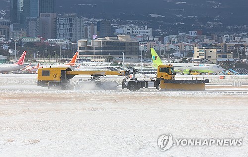 제주공항 "제설작업으로 오전 10시까지 활주로 운영 중단"제주의 폭설 등 기상 악화로 제주국제공항 항공기 운항이 일시 중단되고 있습니다.제주공항은 "오늘(8일) 새벽 시간대 강설과 눈 폭풍으로 인해 항공기 이동지역 제설작업을 위해 관계기관 협의결과에 따라 잠정 오전 10시까지 활주로 운