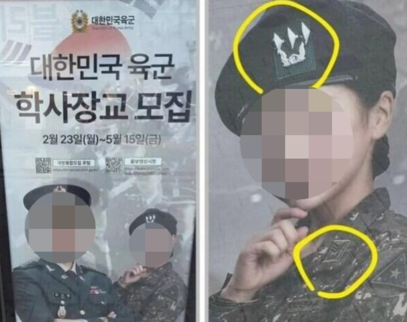 "대위? 상사?" 엉터리 전투복에 '집게 손'까지…육군 포스터 결국 철거육군 학사장교 모집 홍보 포스터에서 계급장 오류와 손 모양 논란이 불거지며, 결국 전면 철거되는 사태가 발생했습니다.최근 온라인커뮤니티에는 '대위면서 상사인 여자'라는 제목으로 ‘대한민국 육군 학사장교 모집’ 포스터를 찍은 게시물