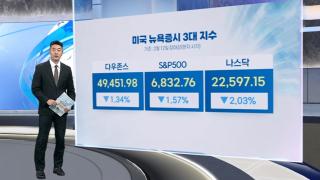 [3분증시] AI 위협업종 투매 지속…뉴욕증시, 급락 마감3분 증시입니다.▶ AI 위협업종 투매 지속…뉴욕증시, 급락 마감뉴욕증시 3대 주가지수가 급락했습니다.현지 시간 12일, 다우존스30산업평균지수는 전 거래일보다 1.34% 내렸고요.S&P500 지수는 1.57%, 나스닥 종
