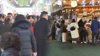 명절 맞이로 분주한 전통시장…골목마다 '북적'[앵커]본격적인 설 연휴 시작을 하루 앞둔 오늘, 전통시장에도 모처럼 활기가 돌고 있습니다.알뜰하게 명절 음식을 준비하려는 시민들의 발길이 이어지고 있는데요.시장에 나가있는 취재기자 연결해보겠습니다.김도헌 기자.[기자]네, 저는