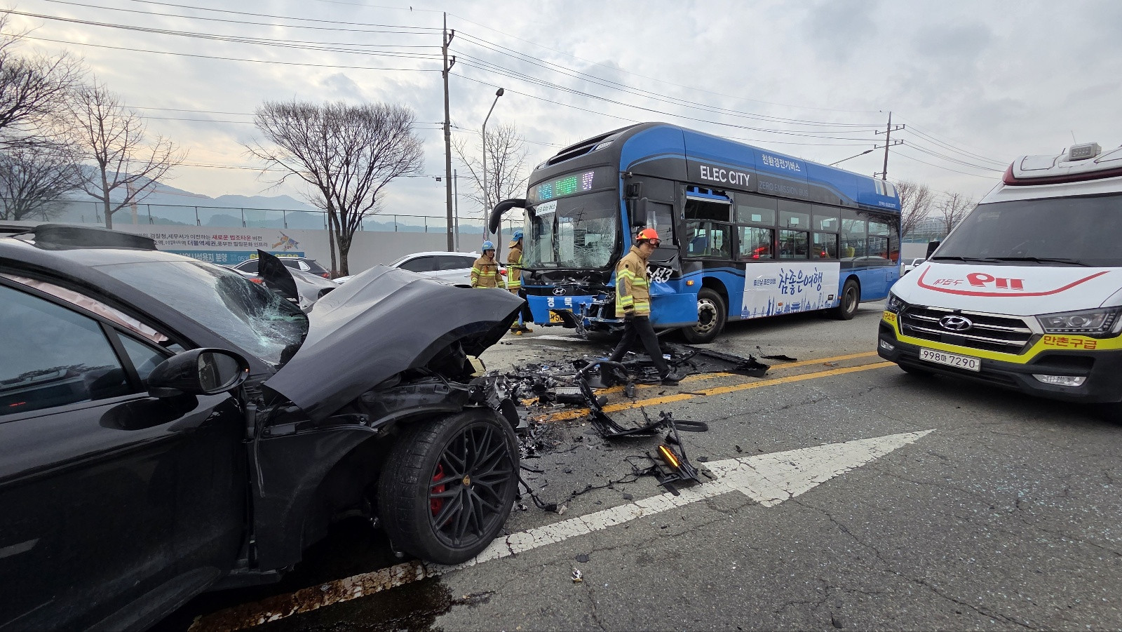 대구 수성구서 포르쉐 SUV·시내버스 '쾅'…13명 중경상대구에서 SUV와 시내버스가 충돌해 13명이 다쳤습니다.대구소방본부에 따르면 오늘(20일) 낮 12시 20분쯤 대구시 수성구 연호동 달구벌대로에서 포르쉐 SUV와 시내버스가 충돌했습니다.이 사고로 SUV 운전자와 동승자, 버스 운
