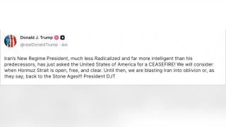 트럼프 "이란의 '새 정권' 대통령, 방금 휴전 요청"도널드 트럼프 미국 대통령은 현지시간 1일 "이란의 새로운 정권 대통령(New Regime President)이 방금 미국에 휴전을 요청했다"고 밝혔습니다.트럼프 대통령은 이날 소셜미디어 트루스소셜에 올린 글에서 이같이 말하면서