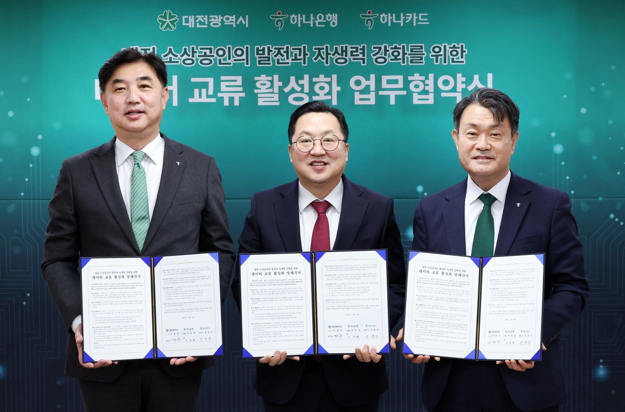 "데이터 협력으로 소상공인 지원" 대전시·하나은행·하나카드 맞손대전시가 하나은행, 하나카드와 손잡고 데이터 협력을 통한 소상공인 지원 정책 고도화를 추진합니다.시는 하나은행, 하나카드와 지역 소상공인의 지속 가능한 성장 기반을 마련하기 위한 '데이터 교류 활성화 업무협약'을 체결했다고 오늘(
