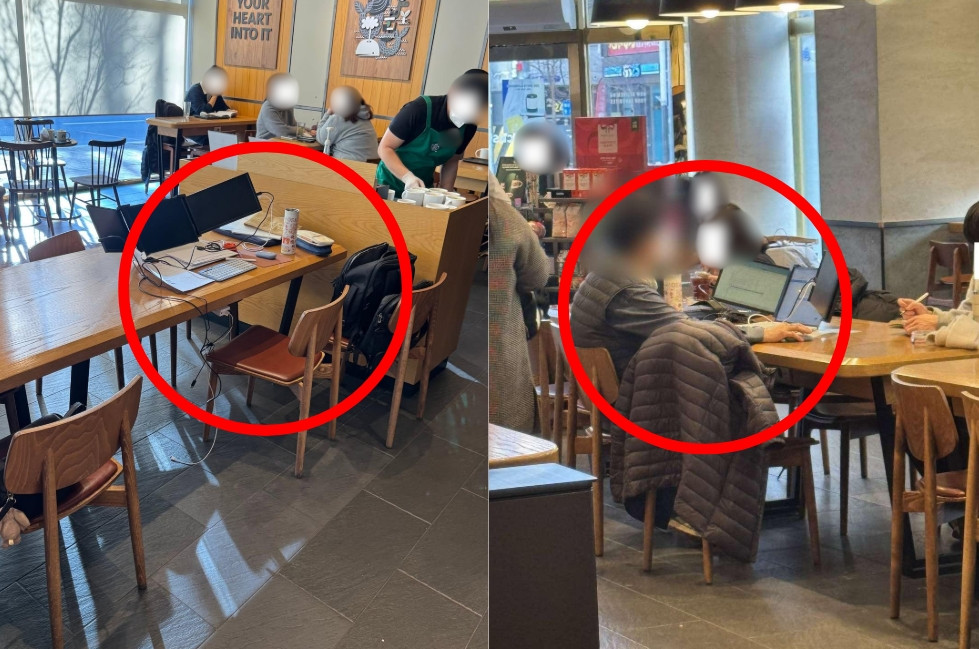 모니터만 3대…혼자 스타벅스 좌석 4개 차지한 손님 논란카페에서 혼자 좌석 4개를 차지해 다른 손님들에게 불편을 주는 행위가 포착돼 온라인상에서 논란이 되고 있습니다.29일 한 온라인 커뮤니티에는 "스타벅스 빌런 아저씨"라는 제목의 글과 사진이 올라왔습니다.제보자는 "점심시간에 사람