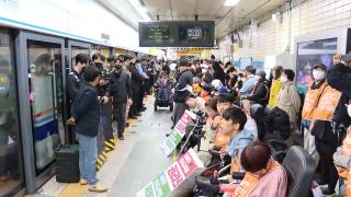 전장연 "6월 지방선거까지 지하철 탑승시위 유보"전국장애인차별철폐연대가 6월 지방선거까지 지하철 연착을 유발하는 탑승 시위를 중단하기로 했습니다.박경석 전장연 상임 대표는 오늘(7일) 지하철 4호선 혜화역에서 기자회견을 열고 더불어민주당 김영배 의원의 시위 유보 제안을 수용하겠