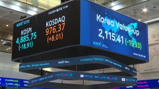 13일 만에 하락한 코스피…코스닥은 4년만 최고치[앵커]어제(19일) 4,900선을 돌파하며 '오천피' 달성을 노렸던 코스피가 오늘(20일)은 13거래일 만에 하락 마감했습니다.반면, 코스닥지수는 970선을 넘기며 약 4년 만에 최고치를 갈아치웠습니다.배시진 기자입니다.[기자]