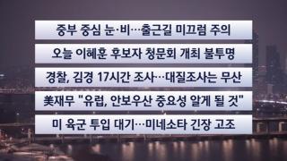[이시각헤드라인] 1월 19일 라이브투데이■중부 중심 눈·비…출근길 미끄럼 주의■현재 중부 지역을 중심으로 눈과 비가 내리고 있습니다.내린 눈비가 차가운 공기에 그대로 얼어붙어 있는 곳이 많아 출근길 미끄럼 사고에 각별한 주의가 필요합니다.■오늘 이혜훈 후보자 청문회 개