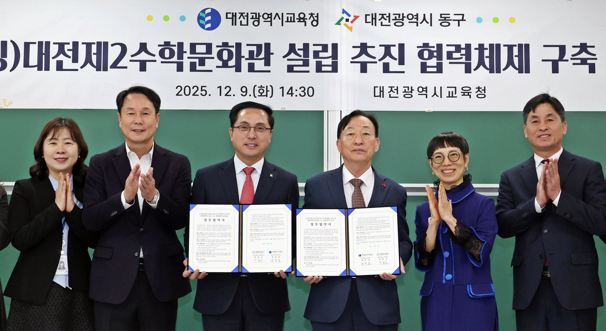 대전 자양초에 제2 수학문화관 설립'…동구·교육청 업무협약대전 동구 자양초등학교 일원에 '대전 제2 수학문화관' 설립이 추진됩니다.박희조 동구청장과 설동호 대전교육감은 오늘(9일) 교육청 중회의실에서 '대전 제2 수학문화관 설립을 위한 업무협약'을 체결했습니다.이 협약은 지난 8월 자양