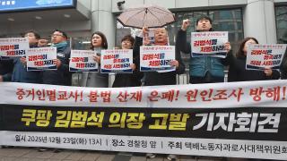 택배노조, 쿠팡 김범석 고발…"산재 은폐 시도"택배노조가 지난 2020년 쿠팡 물류센터에서 근무하다 숨진 고(故) 장덕준 씨 사건과 관련해 쿠팡 김범석 의장을 경찰에 고발했습니다.택배노조 과로사대책위원회는 오늘(23일) 김 의장에 대해 증거인멸교사 및 산업안전보건법 위반 등
