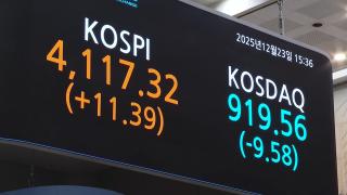 코스피 이틀 연속 4,100선 마감…환율 1,480원대코스피가 2거래일 연속으로 4,100선 위에서 장을 마쳤습니다.오늘(23일) 코스피는 전 거래일(22일) 대비 0.28% 오른 4,117.32에 거래를 마쳤습니다.유가증권시장에서 기관과 외국인이 동반 '사자'에 나서면서 지수 상승