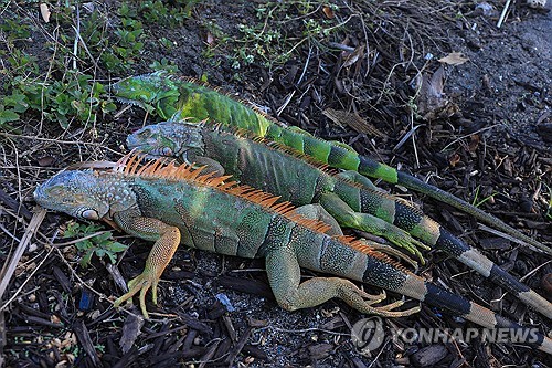 이구아나 수난시대…美 이상한파에 얼어붙어 나무에서 떨어져미국을 덮친 초강력 한파로 남부 플로리다주에서 이구아나들이 꽁꽁 얼어붙은 채 나무에서 떨어지는 현상이 속출하고 있습니다.현지시간 1일 AP통신 등에 따르면 이날 플로리다에는 1989년 이후 가장 차가운 기단이 유입되면서 일부 지역