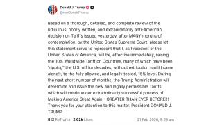 [속보] 트럼프 "글로벌 관세, 10%에서 15%로 인상하겠다"연합뉴스TV 기사문의 및 제보 : 카톡/라인 jebo23김태욱(tw@yna.co.kr)