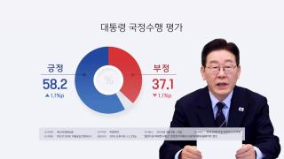 리얼미터 "국정지지도 58.2%…1.1%p 상승"이재명 대통령의 국정수행 지지도가 1주 만에 반등했다는 여론조사 결과가 나왔습니다.리얼미터가 에너지경제신문 의뢰로 지난 3일부터 나흘간 국 18세 이상 2,004명을 대상으로 조사한 결과, 이 대통령의 국정수행에 대한 긍정 평가는