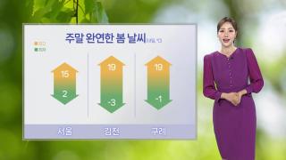 [날씨] 주말 완연한 봄 날씨…큰 일교차 유의주말인 내일은 완연한 봄 날씨가 이어지겠습니다.서울의 낮 기온은 15도, 일부 남부 지방은 20도 가까이 오르며 포근하겠는데요.다만, 아침과 낮, 낮과 밤의 기온차는 매우 크게 벌어지니까, 시간대에 따라 옷차림 잘해주셔야겠습니다.