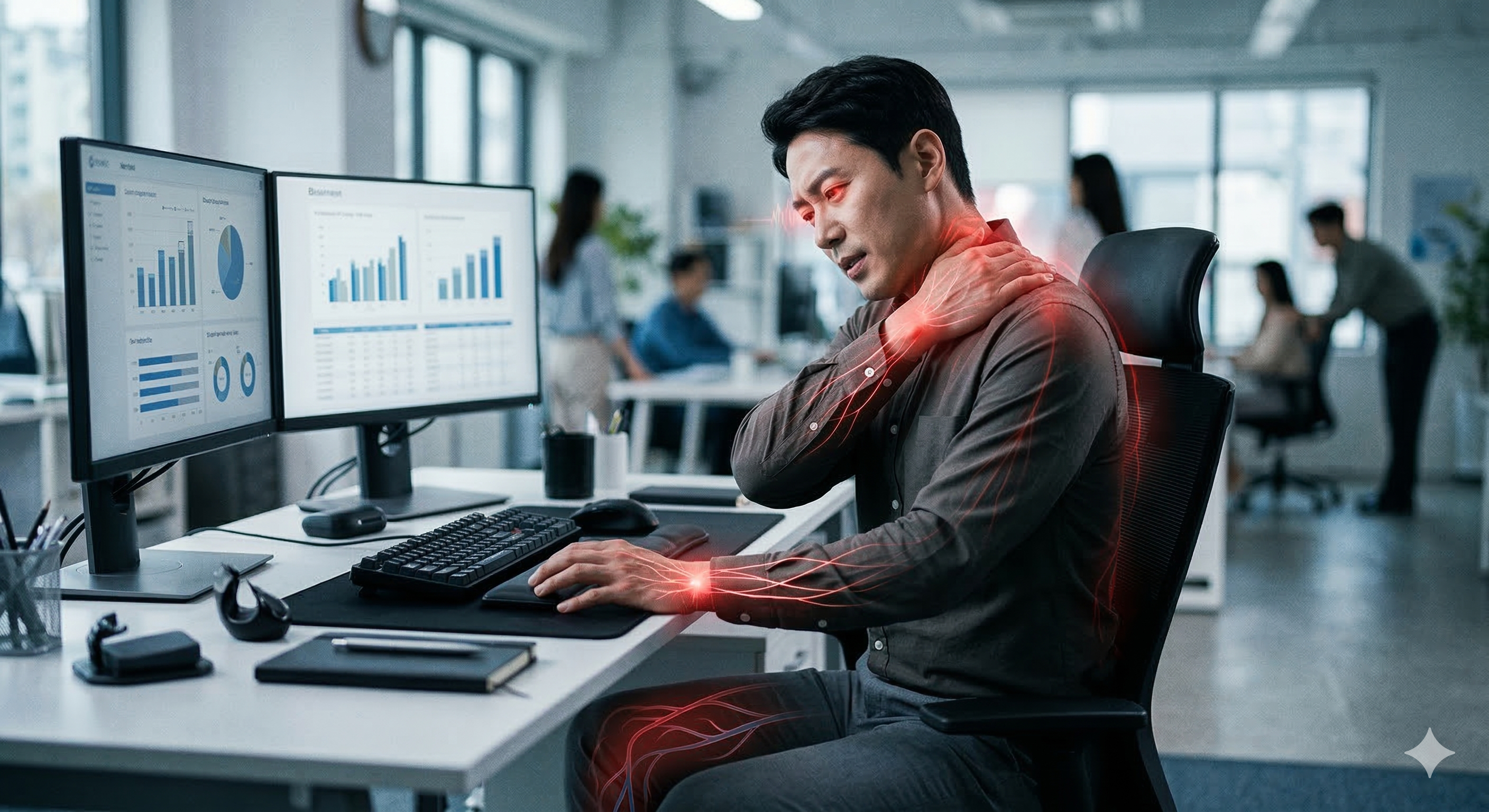 [알아BIO] 아침부터 찌릿한 손끝…직장인 괴롭히는 각종 증후군※ [문형민의 알아BIO]는 제약·바이오·의료 이슈를 취재해 쉽게 설명하는 연재 기사입니다.‘아차’ 하는 순간 이미 늦었을지도 모릅니다.매일 아침 알람 소리에 눈을 뜨자마자 스마트폰을 집어드는 손끝이 유난히 저릿하거나, 오후 3시