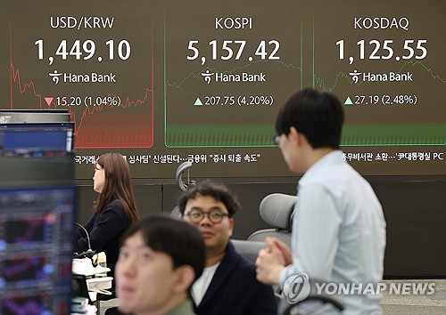 코스피, 7% 뛰어 사상 최고치 경신…코스닥도 4% 급등코스피가 오늘(3일) 6% 넘게 폭등해 사상 최고치를 경신하며 장을 마감했습니다.이날 코스피는 전 거래일(2일) 대비 6.84% 오른 5,288.08에 장을 마쳤습니다.종가 기준으로 지난달 30일의 5,224.36을 넘어서면서 전