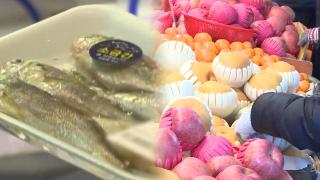 설 앞두고 먹거리 물가 '쑥'…조기 21%·사과10%↑[앵커]지난달 소비자물가가 2% 올랐습니다.석유류 가격이 안정되며 5개월 만에 가장 낮은 상승폭을 보이긴 했는데요.설 명절을 앞두고 사과가 10% 넘게 오르는 등 먹거리 물가는 높은 수준을 보여, 소비자들의 장바구니 물가 부담은