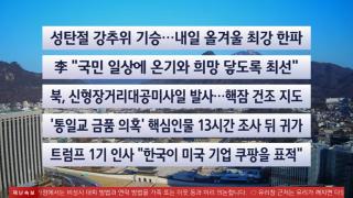 [이시각헤드라인] 12월 25일 뉴스와이드 (11시)■성탄절 강추위 기승…내일 올겨울 최강 한파■성탄절인 오늘, 서울 아침 기온이 영하 3도까지 떨어지며 종일 찬 바람이 불겠습니다.오후부터는 서해안 곳곳에 많은 눈도 예상되는데, 내일은 서울 기온이 영하 12도까지 떨어지며 올겨울