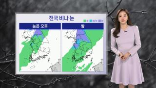 [날씨] 내일까지 전국 비나 눈…찬 바람 불며 기온 '뚝'오늘 퇴근하실 때 우산 잘 챙겨주셔야겠습니다.전국 대부분 지역에 비나 눈 소식이 들어 있는데요.늦은 오후에 중부와 호남을 시작으로, 밤에는 전국으로 확대되겠습니다.이 강수는 내일 밤까지 내렸다 그치기를 반복하겠습니다.앞으로 예상