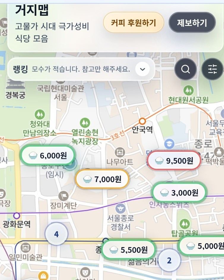"회사 근처에 3,500원 자장면 있네"…'거지맵'에서 가성비 찾는 MZ들1천 원 돈까스, 3천 원 자장면…몇천 원대 저렴한 한 끼 식사를 판매하는 식당들이 가격과 함께 지도 위에 표시됩니다.누리꾼 제보를 통해 '가성비 음식점'을 소개하는 사이트 '거지맵'입니다.이 '거지맵'은 고물가 시대에 청년들이