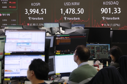 코스피, 하루 만에 4천선 붕괴…환율 1,478.3원 마감코스피가 하루 만에 4천선을 내주며 하락 마감했습니다.코스피는 오늘(18일) 전장보다 1.53% 내린 3,994.51에 거래를 마쳤습니다.외국인과 기관의 동반 매도세가 이어지며 장중 낙폭이 확대됐습니다.LG에너지솔루션은 9조원대