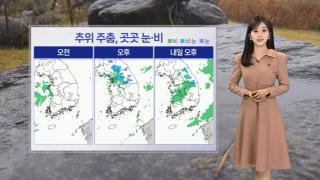 [날씨] 추위 주춤, 내일까지 곳곳 가끔 비·눈…빙판 주의오늘 크게 춥진 않겠지만, 나오실 때 작은 우산 하나 챙기셔야겠습니다.곳곳에 눈 또는 비가 내리겠는데요.충남 서해안부터 내리기 시작해서, 오후에는 수도권 등 중부지방으로 확대되겠고, 내일 오후까지 산발적으로 이어지겠습니다.비의 양