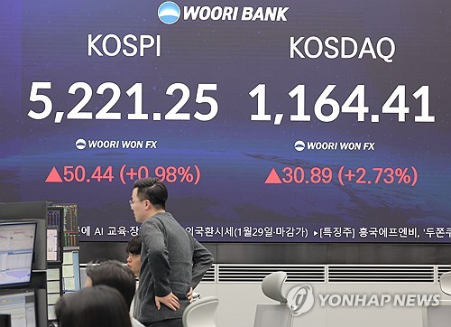코스피 0.21% 내린 5,210.35 출발…코스닥은 상승오늘(30일) 코스피 지수가 전 거래일(29일) 대비 10.90포인트(0.21%) 내린 5,210.35에 장을 시작했습니다.반면 코스닥 지수는 전 거래일(1164.41)보다 1.82포인트(0.16%) 오른 1,166.23에 개장했