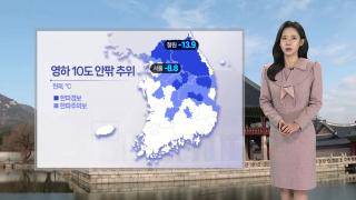 [날씨] 오늘도 전국 한파 이어져 …건조함 속 강한 바람오늘은 더 춥겠습니다.중부와 경북 곳곳에 한파특보가 발효 중인 가운데, 지금 이 시각 서울 영하 8.8도를 나타내고 있습니다.오늘 아침 중부를 중심으로 영하 10도 안팎의 강추위가 나타나겠고요.경기와 강원 일부 지역은 영하 15도