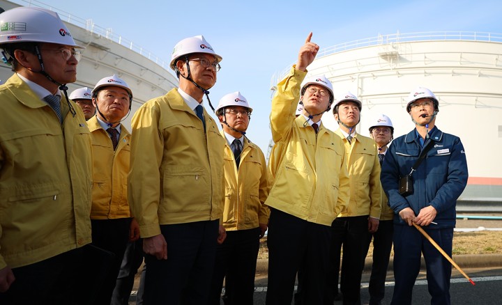 [현장영상] 이 대통령, 석유공사 비축기지 방문…'중동 대응'중동발 위기에 따라 비상 대응에 나선 이재명 대통령이 석유공사 비축기지를 방문했습니다.조금 전 현장 직접 보시겠습니다.충남 서산에 위치한 석유공사 비축기지를 찾은 이 대통령의 모습이 보입니다.이 대통령은 중동 전쟁에 따른 에너지