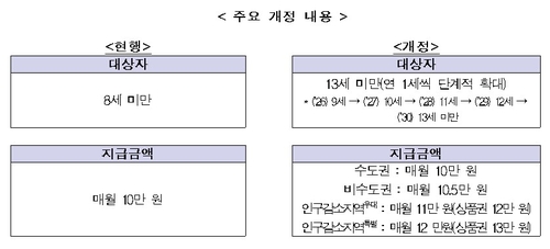 비수도권·인구감소 지역 아동수당 5천∼2만원 추가 지급다음 달부터 비수도권이나 인구감소지역에 거주하는 아동에게 5천∼2만원의 아동수당이 추가로 지급됩니다.보건복지부는 지역별 아동수당 추가금액을 구체화하는 '아동수당법 시행령 일부개정령안'이 국무회의에서 의결됐다고 밝혔습니다.아동수당은