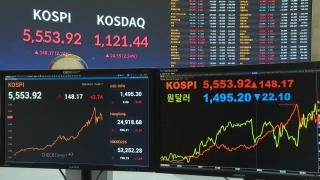 코스피 5,500선 회복…환율 1,500원 아래로[앵커]어제(23일) 중동 전쟁 확전 공포에 '검은 월요일'을 맞았던 국내 증시가 하루 만에 반등했습니다.미국 증시 반등과 중동전쟁 긴장 완화 기대감에 코스피와 코스닥 모두 2%대 상승 마감했는데요.자세한 마감시황, 취재기자 연결