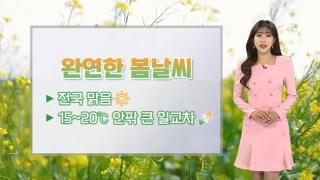 [날씨] 낮 최고 21도, 완연한 봄…중서부 공기질 탁해[앵커]오늘 전국이 대체로 맑은 가운데 일교차가 크게 벌어지겠습니다.중서부 지역을 중심으로는 공기질이 탁하겠는데요.자세한 날씨는 기상캐스터와 함께 알아보겠습니다.진연지 캐스터.[캐스터]봄의 색이 짙어졌습니다.오늘은 어제보다 기온이