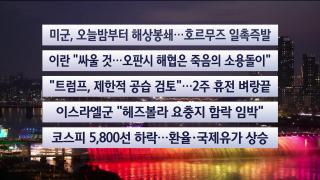 [이시각헤드라인] 4월 13일 뉴스리뷰■미군, 오늘밤부터 해상봉쇄…호르무즈 일촉즉발■트럼프 대통령이 우리시간으로 오늘밤 11시부터 호르무즈 해협 역봉쇄를 예고했습니다.호르무즈 해협 일대 긴장감이 다시 높아지고 있습니다.■이란 "싸울 것…오판시 해협은 죽음의 소용돌이"