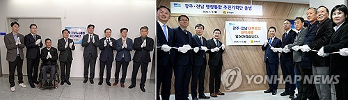 '이제 통합으로'...광주시·전남도, 행정 통합 추진기획단 출범광주시와 전남도가 오늘(5일) '광주·전남 행정통합 추진기획단'을 출범시키고 본격적인 통합 준비에 들어갔습니다.시도는 이날 오전 시청과 도청에서 각각 행정통합 업무를 총괄할 전담 조직인 '광주·전남 행정통합 추진기획단' 현판식을