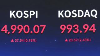 코스피, 4,990선 최고치 마감…'천스닥' 눈앞[앵커]어제(22일) 코스피가 사상 처음으로 5,000선을 돌파한 데 이어, 오늘은 4,990선에 마감하며 종가 사상 최고치를 기록했습니다.코스닥도 990선에 마감하며 ‘천스닥’을 눈앞에 두고 있습니다.자세한 마감 시황, 취재기자