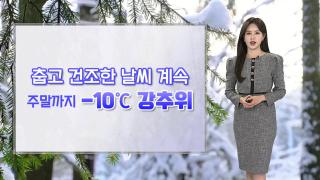 [날씨] 주말까지 -10도 강추위 기승…동쪽 '산불 비상'연일 영하권을 맴도는 강추위가 계속되고 있습니다.오늘 서울을 포함한 충남과 전남 내륙에 한파주의보가 다시 확대됐고요.경기 북부와 강원도는 한파경보가 발효 중인 가운데, 이들 지역은 내일 아침에도 영하 15도 안팎의 맹추위가 이어지